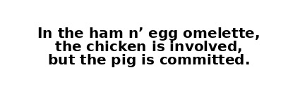 I was down at Piggy Pat’s the other day for dinner. On the wall, there was this placard that read: “In the ham n’ egg omelette, the chicken is involved, but the pig is committed.” It stuck with me—not just as a witty turn of phrase, but as a stark illustration of uneven stakes in a shared endeavor.