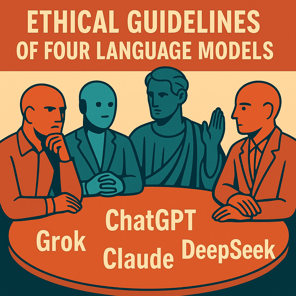 As artificial intelligence becomes increasingly integrated into our lives, the moral principles behind language models are shaping not just their answers but the very nature of human-machine interaction. This article offers imagined “ethical declarations” for four well-known large language models—ChatGPT, Claude, Grok, and DeepSeek—to highlight their design philosophies and value orientations. Comparison tables are also included for clarity.