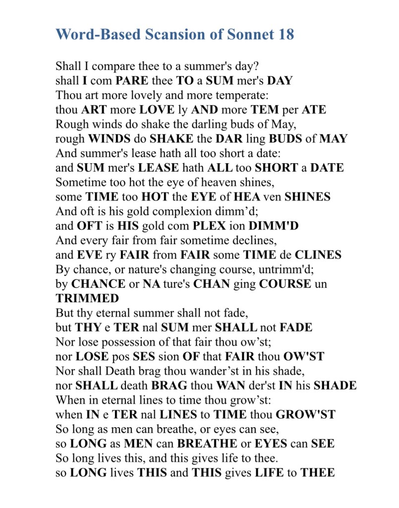 Below is the scansion for this work in two notational systems, one word-based and one in the da-DUM notation – or the sound-based mnemonic scansion notation: