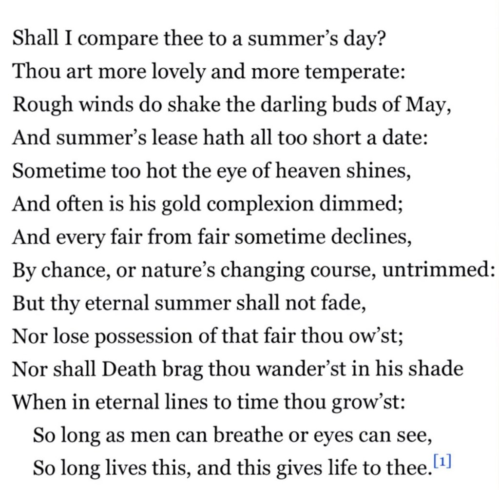 Iambic meter is the most common in English language poetry. The model work of the Iambic meter is Shakespeare’s most celebrated Sonnet 18: