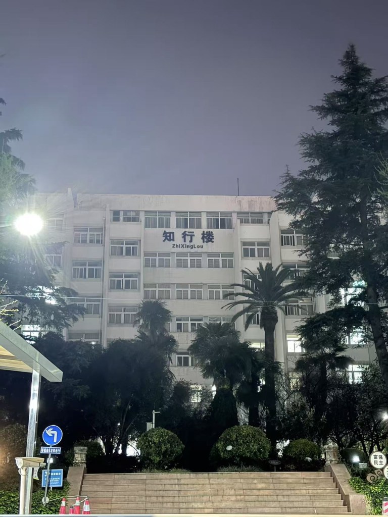 心里是一片激动。我顺着最自然的路线往前走——拾阶而上那段宽阔的石阶,小山顶,山的顶端,是一栋六层高的教学楼。