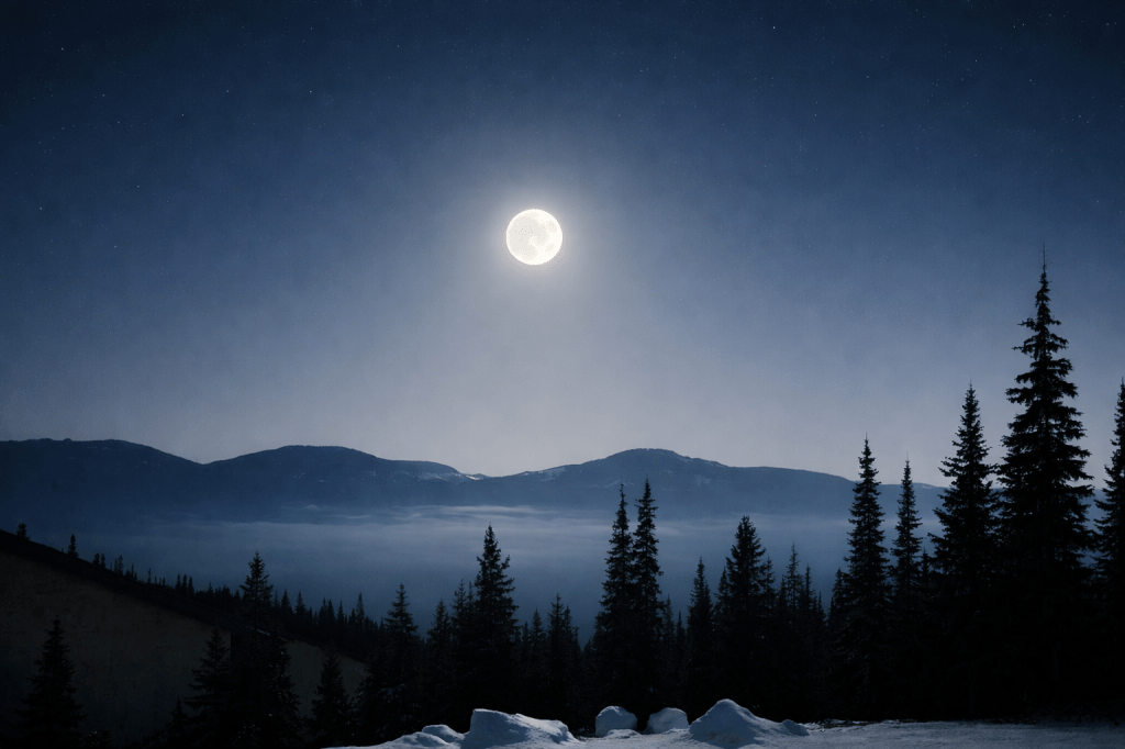 屋外静洁的天上,一轮皎月当空;月光如水,倾泻在黑夜里隐隐约约、结成了冰凌的世间万物上,犹如一道无形的通衢,要将寒冷的世间,与头顶上寒星闪烁的夜空相连。